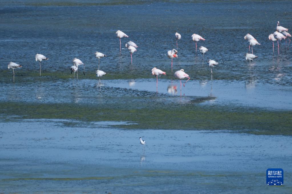 5月8日,火烈鳥(niǎo)在西班牙富恩特皮埃德拉湖棲息。