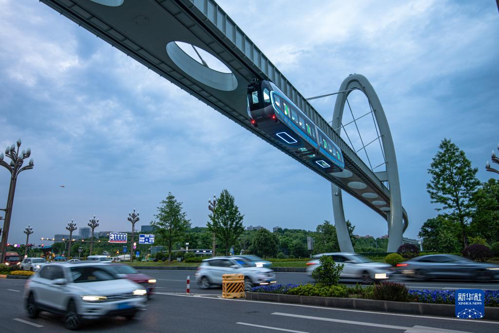 5月9日拍攝的武漢“光谷光子號”空軌列車(chē)。