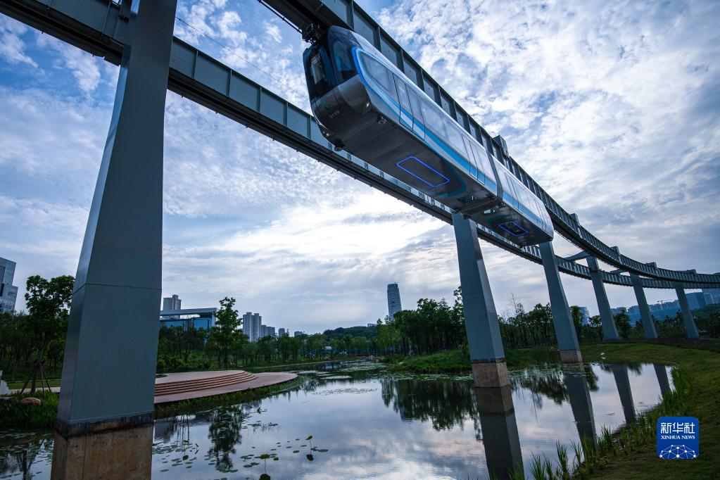 5月9日拍攝的武漢“光谷光子號”空軌列車(chē)。