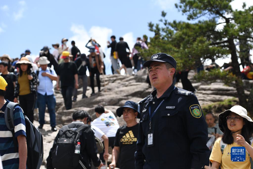 4月20日,秦志平在黃山風(fēng)景區光明頂附近進(jìn)行路段巡查。