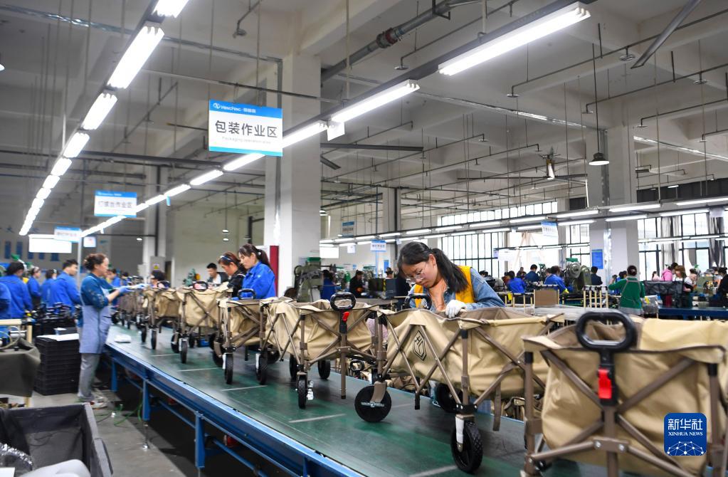 5月10日,工作人員在河南省駐馬店市平輿縣一家戶(hù)外用品企業(yè)安裝車(chē)間忙碌。