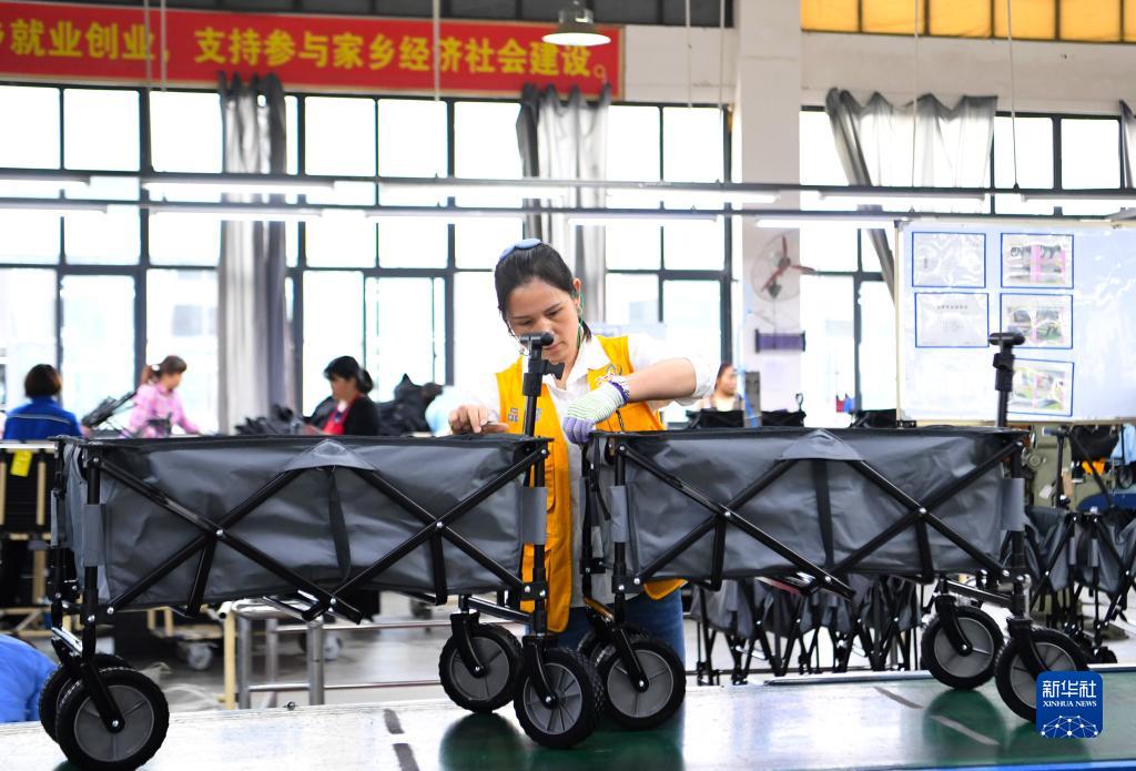 5月10日,工作人員在河南省駐馬店市平輿縣一家戶(hù)外用品企業(yè)安裝車(chē)間忙碌。