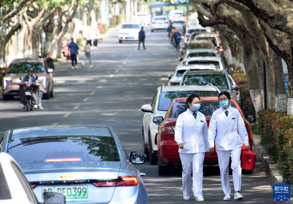 5月10日,青島西海岸新區中醫醫院網(wǎng)約護士走出醫院開(kāi)展網(wǎng)約上門(mén)服務(wù)。