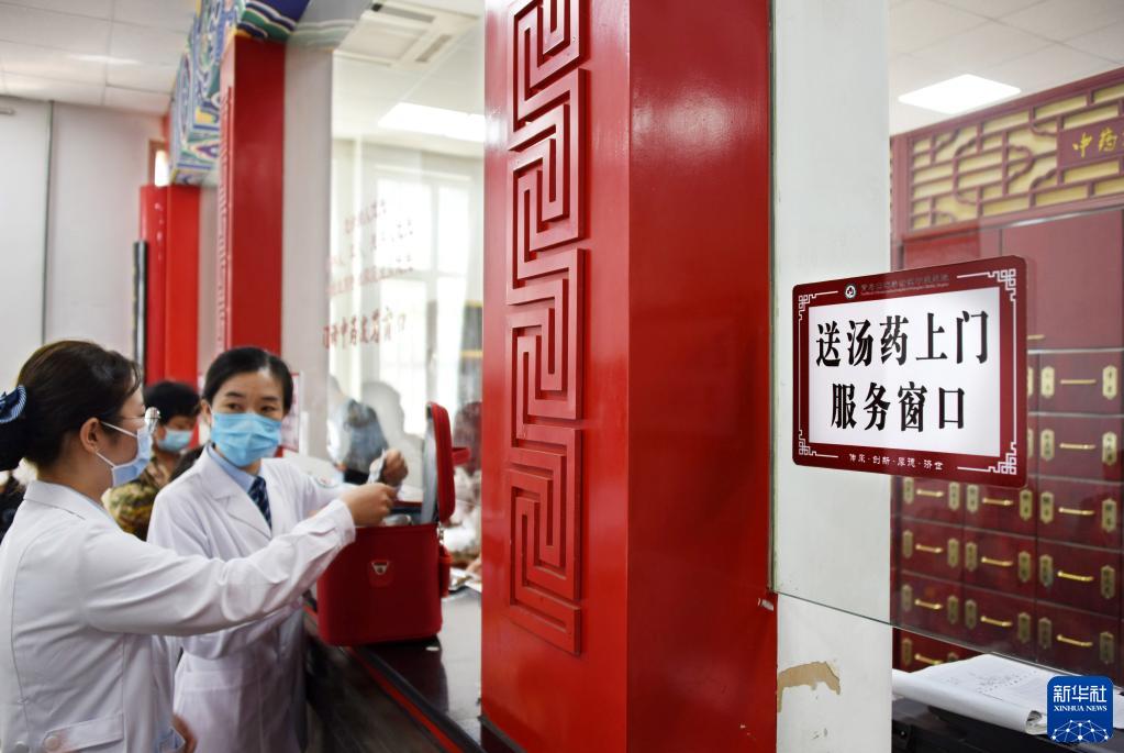 5月10日,青島西海岸新區中醫醫院護士在中藥房替患者領(lǐng)取藥品。