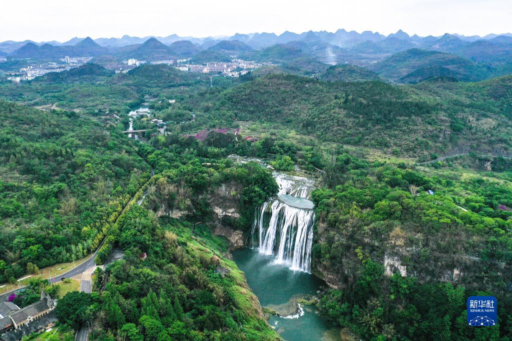這是5月10日拍攝的貴州省安順市黃果樹(shù)瀑布景區(無(wú)人機照片)。