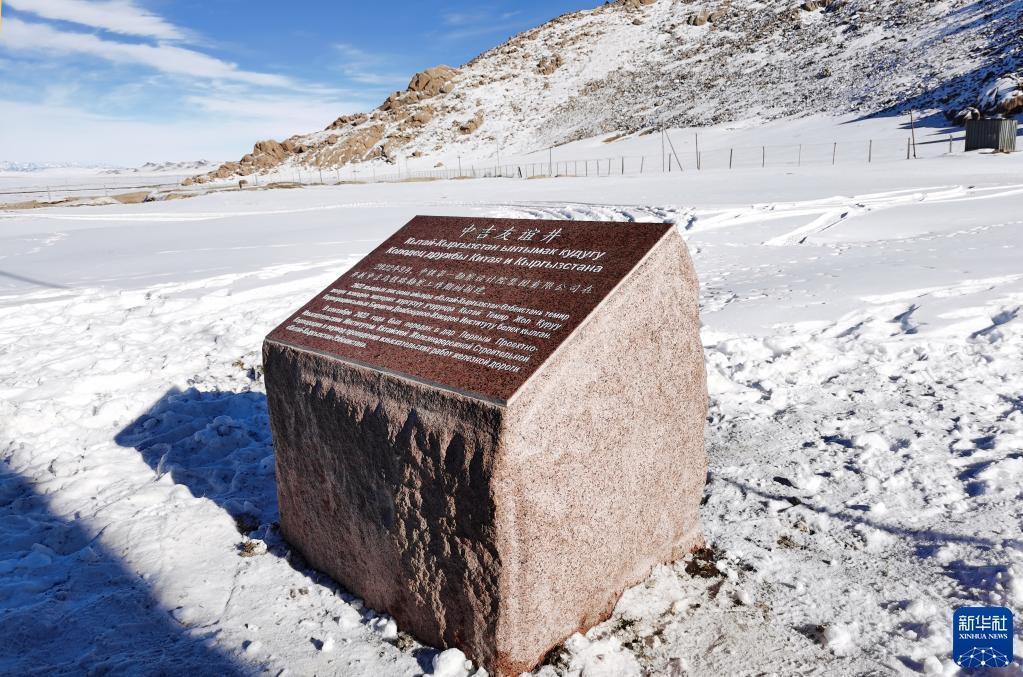 這是2022年11月26日在吉爾吉斯斯坦納倫州拍攝的“中吉友誼井”紀念石碑。