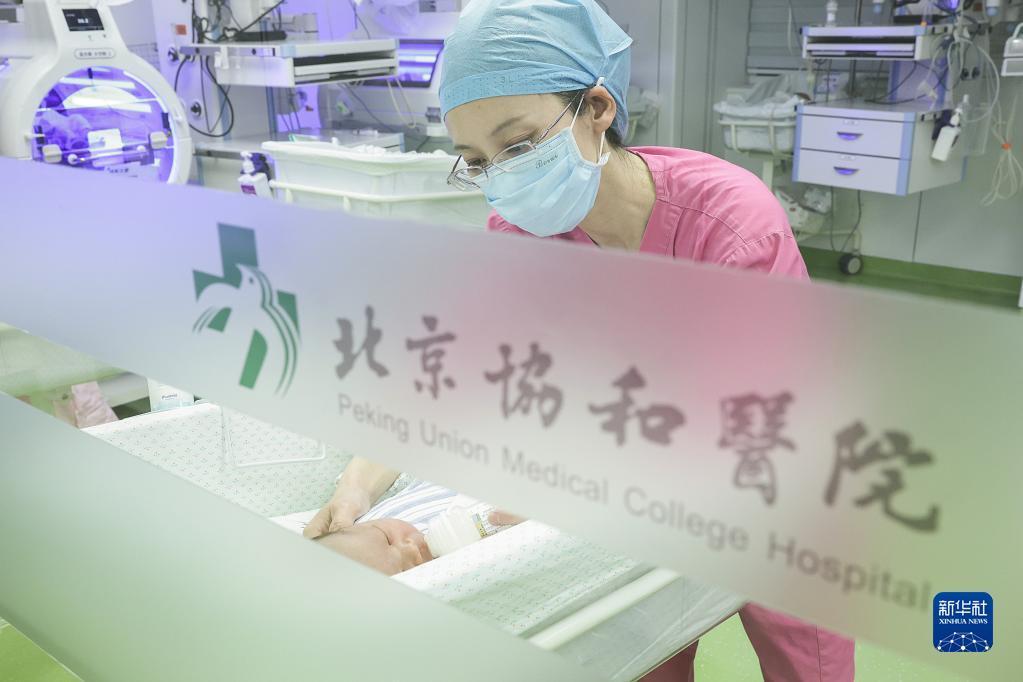 5月9日23時(shí)許,北京協(xié)和醫院新生兒重癥監護病房(NICU)護士崔國鳳在為小寶寶喂奶。