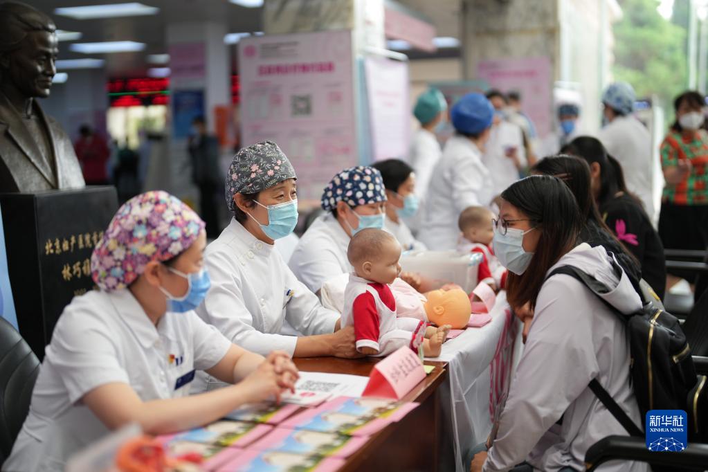 5月12日,護理專(zhuān)家在首都醫科大學(xué)附屬北京婦產(chǎn)醫院東院區為患者答疑解惑。