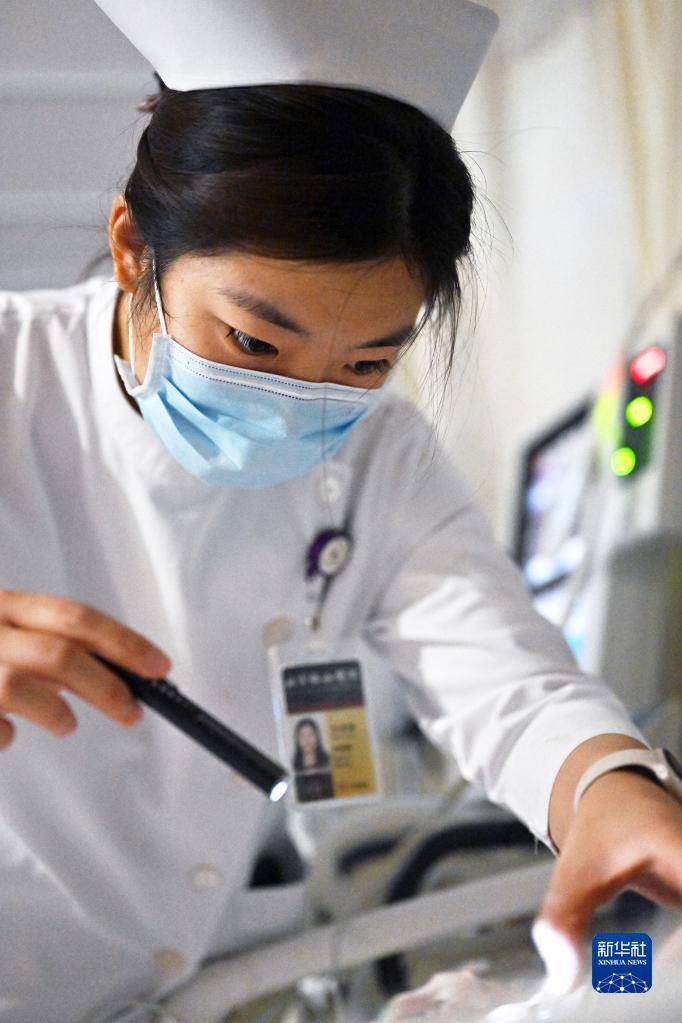 5月11日1時(shí)許,北京協(xié)和醫院神經(jīng)外科病房護士王吉珂查看患者意識狀態(tài)。