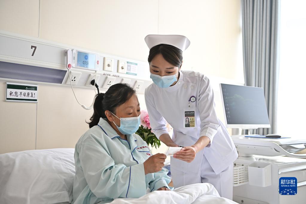 5月9日11時(shí)許,北京協(xié)和醫院國際醫療部護士陳夢(mèng)為患者發(fā)放口服藥并告知服藥注意事項。