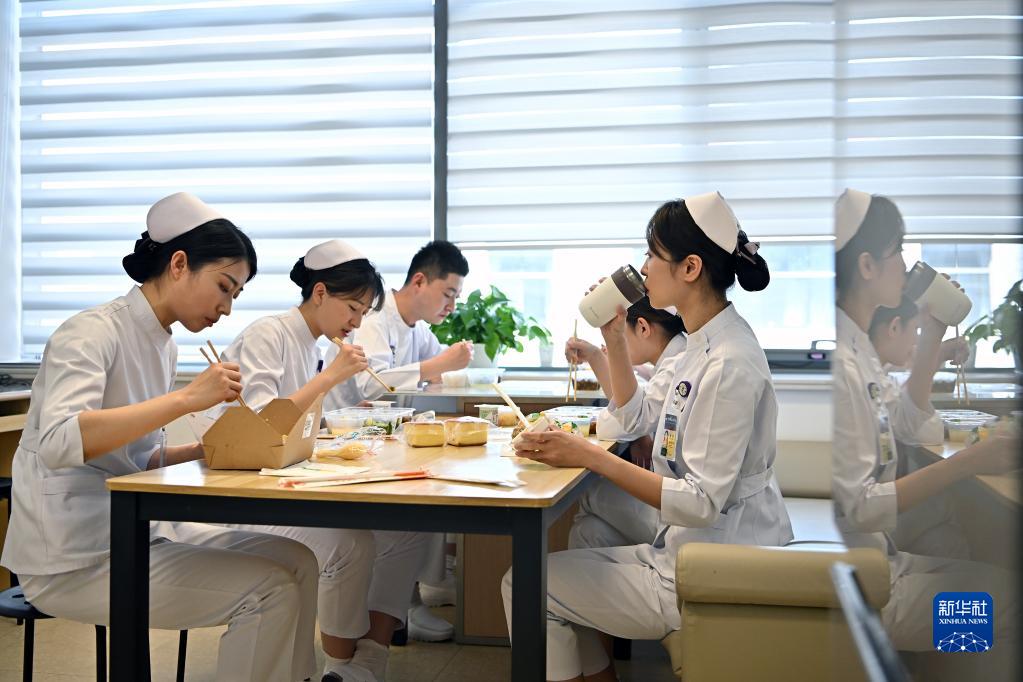5月9日11時(shí)許,北京協(xié)和醫院國際醫療部護士在辦公室吃午飯。