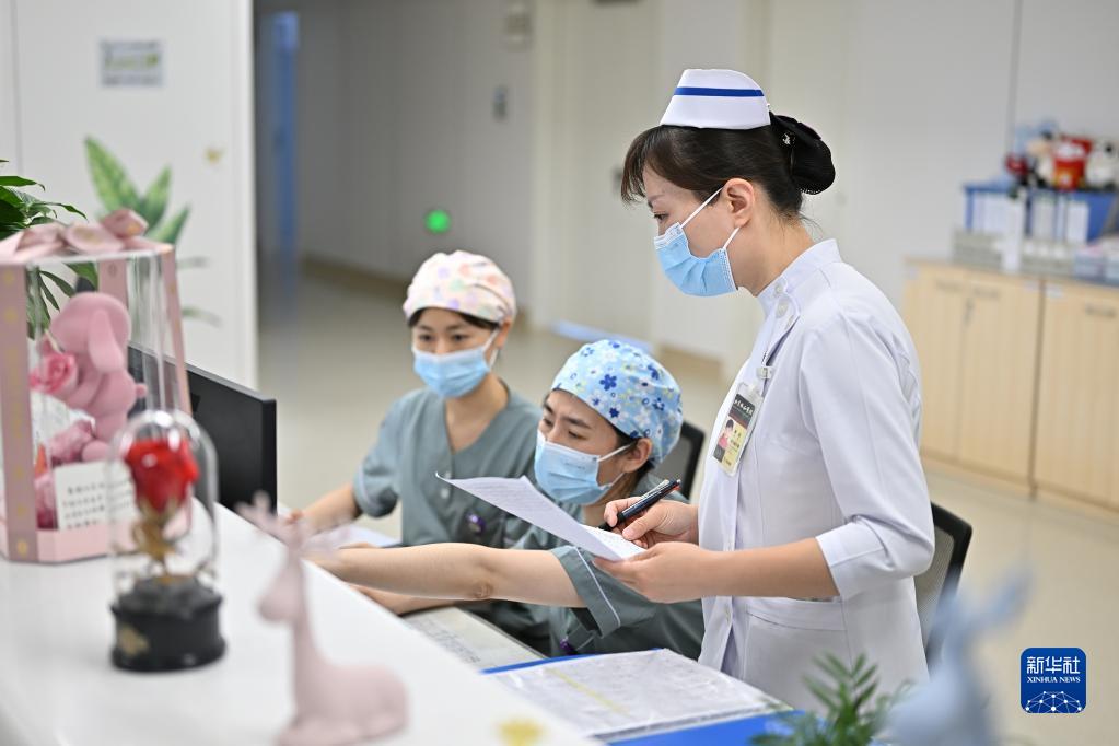 5月9日12時(shí)許,北京協(xié)和醫院國際醫療部產(chǎn)科護士長(cháng)郭羽(右)和同事核對醫囑。
