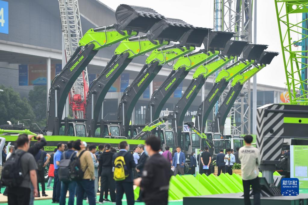 5月12日,觀(guān)眾在長(cháng)沙國際工程機械展覽會(huì )室外展區參觀(guān)。