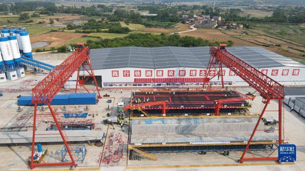 當日,在中國鐵建大橋局肥東制梁場(chǎng),新建上海至南京至合肥高速鐵路安徽段首榀箱梁開(kāi)始澆筑,標志著(zhù)新建滬寧合高鐵安徽段正式進(jìn)入箱梁預制生產(chǎn)階段。