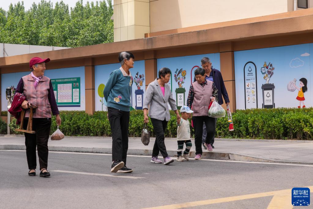 5月12日,北汝村居民在環(huán)境整潔的安置小區內散步。