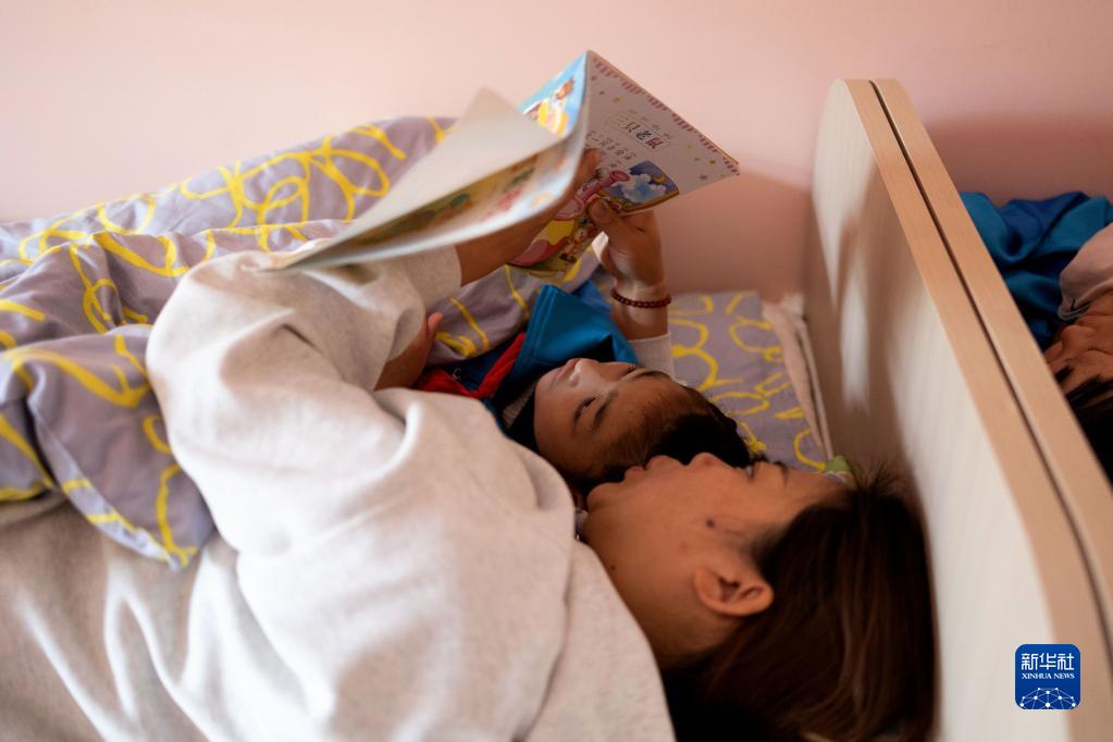 5月9日,在陜西省渭南市特殊教育學(xué)校,王鴿抱著(zhù)小懿菲在午睡前讀書(shū)。