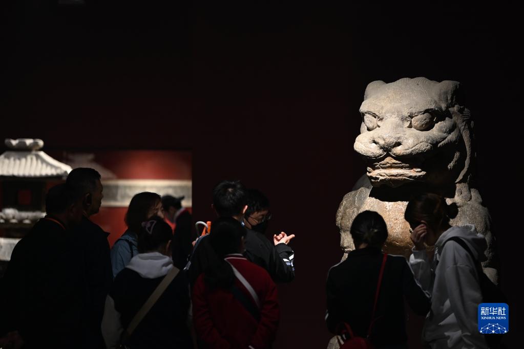 5月9日,游客在西安碑林博物館內參觀(guān)唐代石獅。古代中國的獅子多通過(guò)絲綢之路由外國進(jìn)貢而來(lái)。