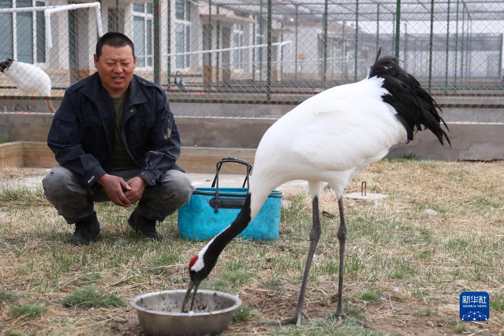 5月11日,徐沃德樂(lè )胡在觀(guān)察救助的丹頂鶴進(jìn)食。