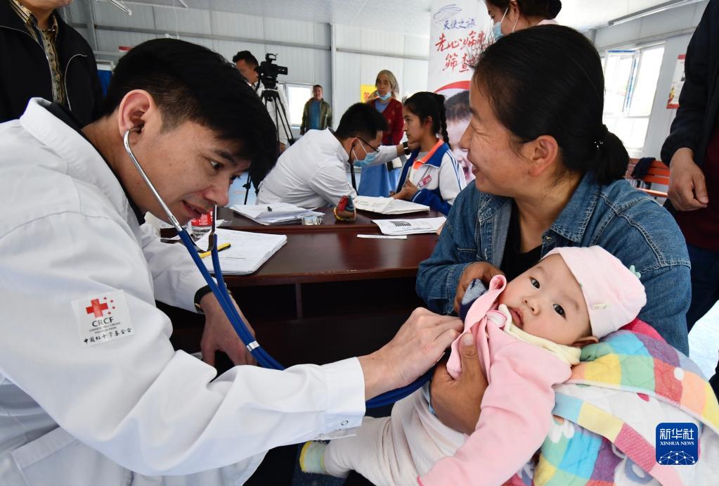 無(wú)錫明慈心血管病醫院的醫生季紅星在為鞏留縣的患兒進(jìn)行篩查(5月11日攝)。