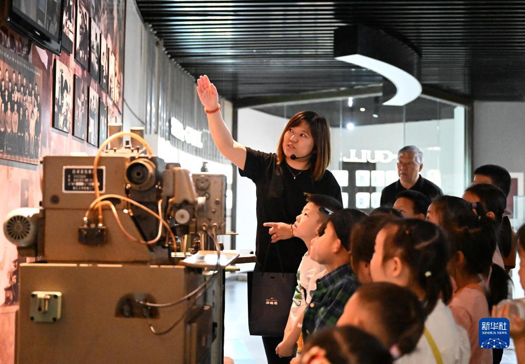 在天津海鷗表博物館,講解員在給小學(xué)生講述天津海鷗表業(yè)集團發(fā)展歷程(5月12日攝)。