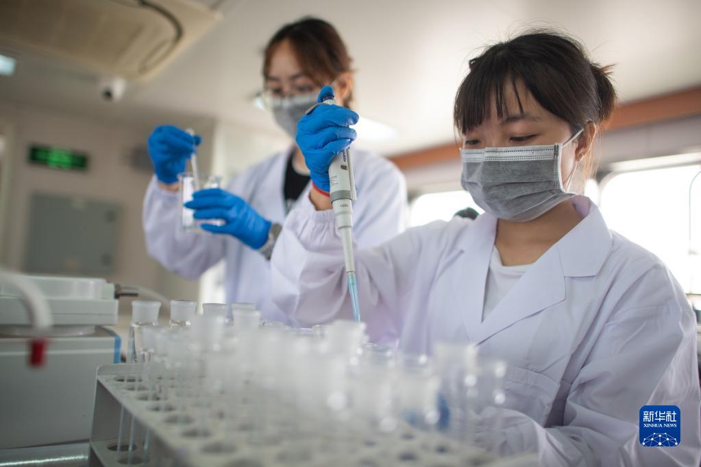 5月13日,監測人員在實(shí)驗室進(jìn)行水樣理化指標分析。