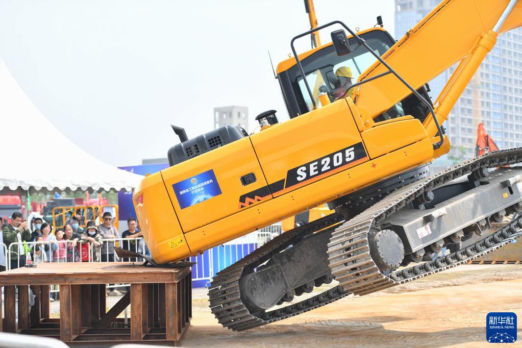 在湖南長(cháng)沙舉辦的第三屆長(cháng)沙國際工程機械展覽會(huì )上,機手們駕駛挖掘機和裝載機進(jìn)行整機漂移、“空中漫步”等,并擺出各種造型、秀“舞技”。