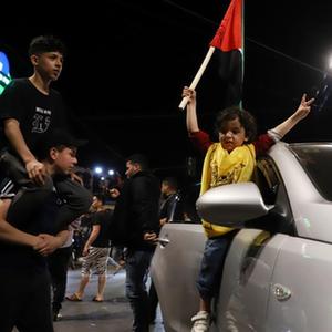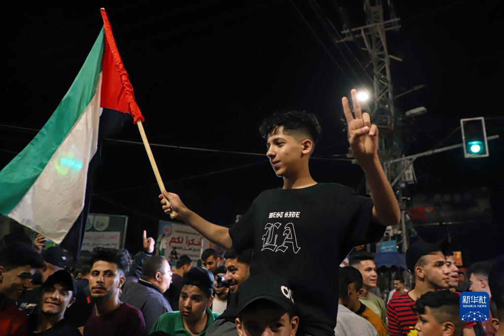 5月13日,巴勒斯坦人在加沙城街頭慶祝?;饏f(xié)議達成。