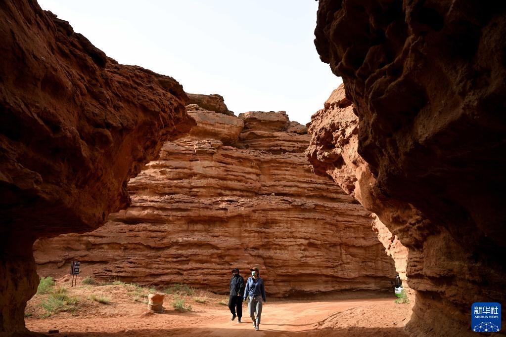 5月13日,游客在內蒙古阿拉善盟阿拉善左旗西部夢(mèng)幻峽谷景區參觀(guān)游玩。