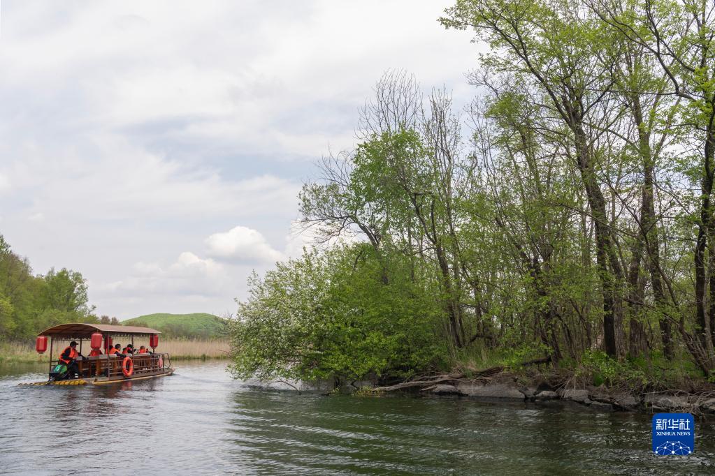 初夏時(shí)節,位于黑龍江省牡丹江市的鏡泊湖世界地質(zhì)公園內山清水秀,美麗的風(fēng)光吸引游客前來(lái)游玩。