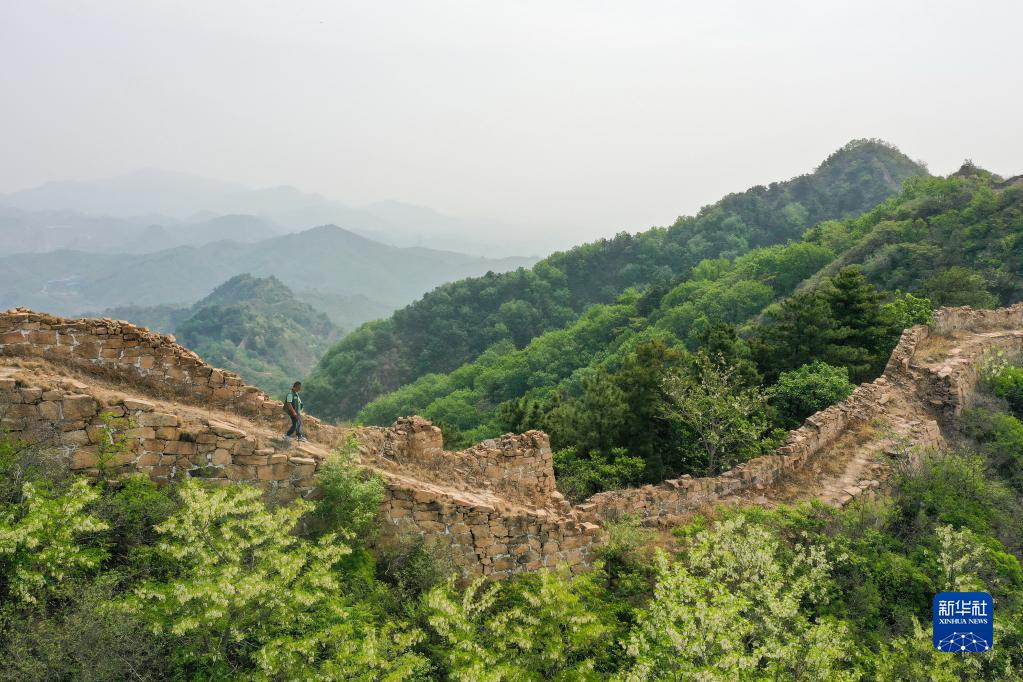 5月13日,趙春生在前后杖子段長(cháng)城上巡查(無(wú)人機照片)。