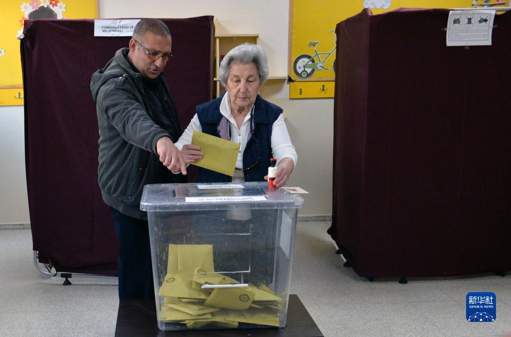 5月14日,在土耳其安卡拉,民眾在一處投票站參加投票。
