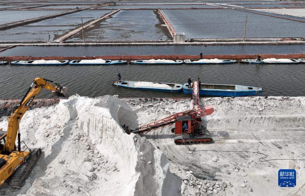 眼下正值長(cháng)蘆鹽區海鹽生產(chǎn)基地春鹽收獲季節,河北省唐山市曹妃甸區南堡鹽場(chǎng)的工人開(kāi)始扒鹽作業(yè),鹽田呈現出一派繁忙景象。據介紹,南堡鹽場(chǎng)是我國長(cháng)蘆鹽區海鹽生產(chǎn)基地之一,當地依托鹽資源豐厚優(yōu)勢,大力發(fā)展鹽化工產(chǎn)業(yè),助推經(jīng)濟發(fā)展。