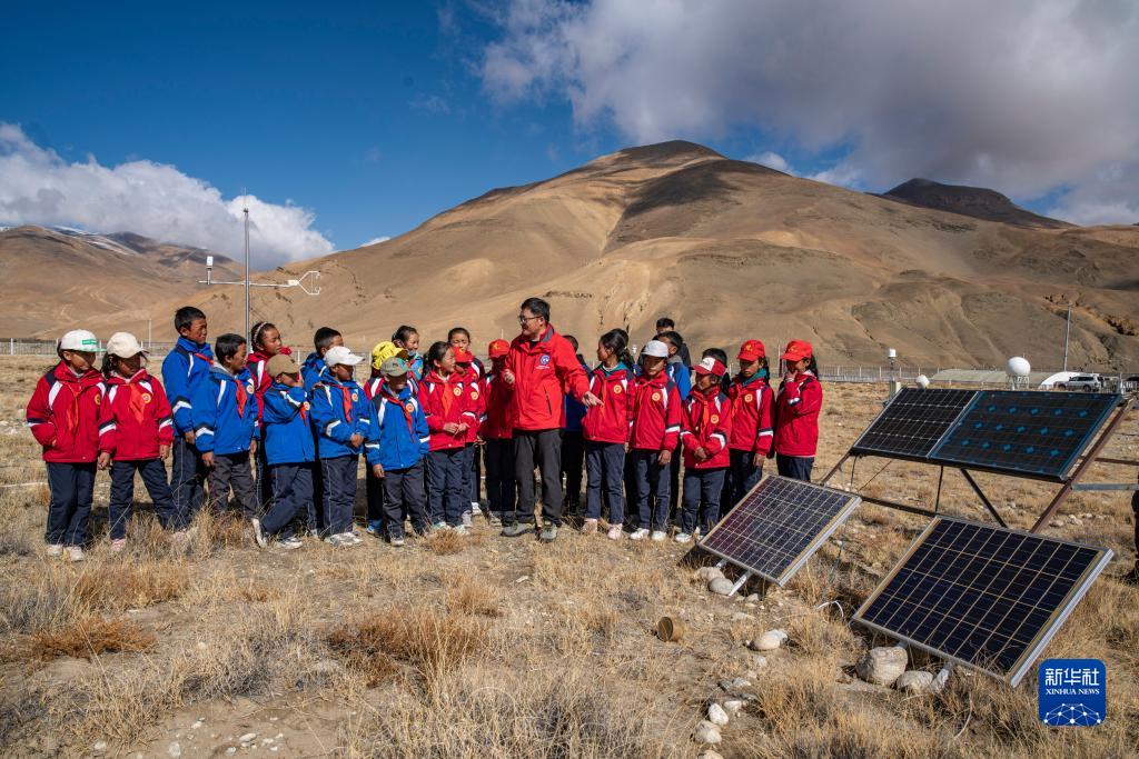 5月15日,珠峰站工作人員席振華給孩子們講解科學(xué)儀器的功能作用。