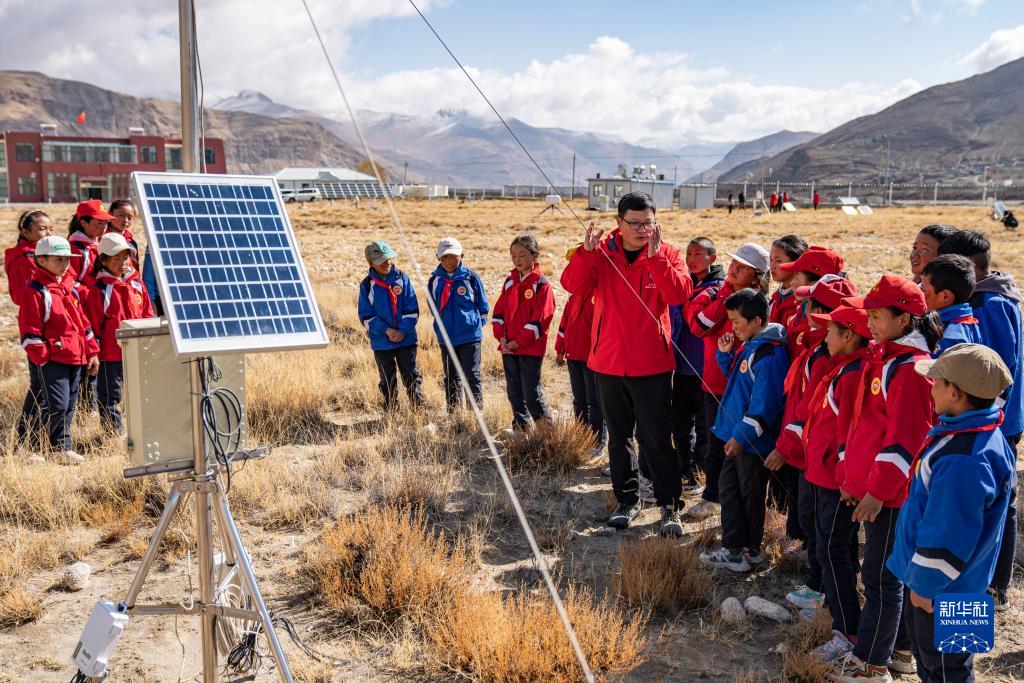 5月15日,珠峰站工作人員席振華給孩子們講解科學(xué)儀器的功能作用。