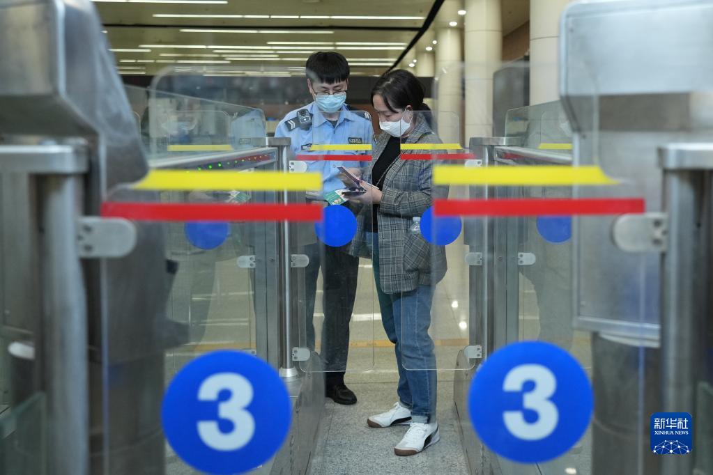 5月15日,沈陽(yáng)出入境邊防檢查站民警引導旅客進(jìn)行快捷通關(guān)。