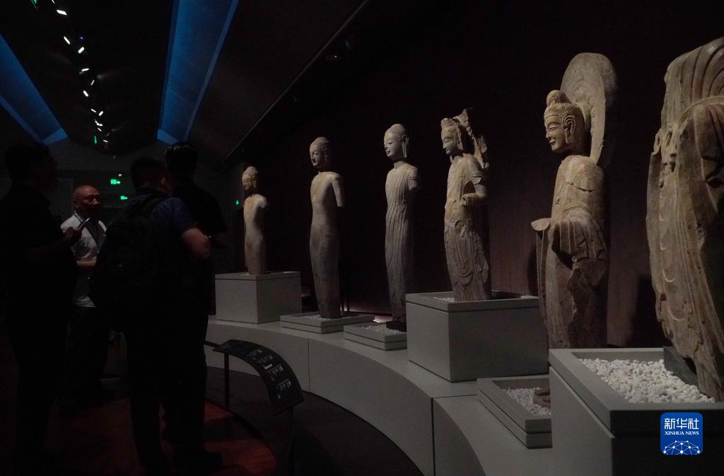 5月15日,在山東省青州博物館新館,1996年龍興寺遺址窖藏出土的佛教造像正在進(jìn)行展出。