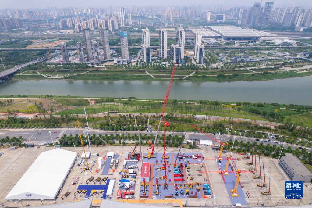 這是5月15日在長(cháng)沙國際會(huì )展中心拍攝的第三屆長(cháng)沙國際工程機械展覽會(huì )戶(hù)外展區(無(wú)人機照片)。