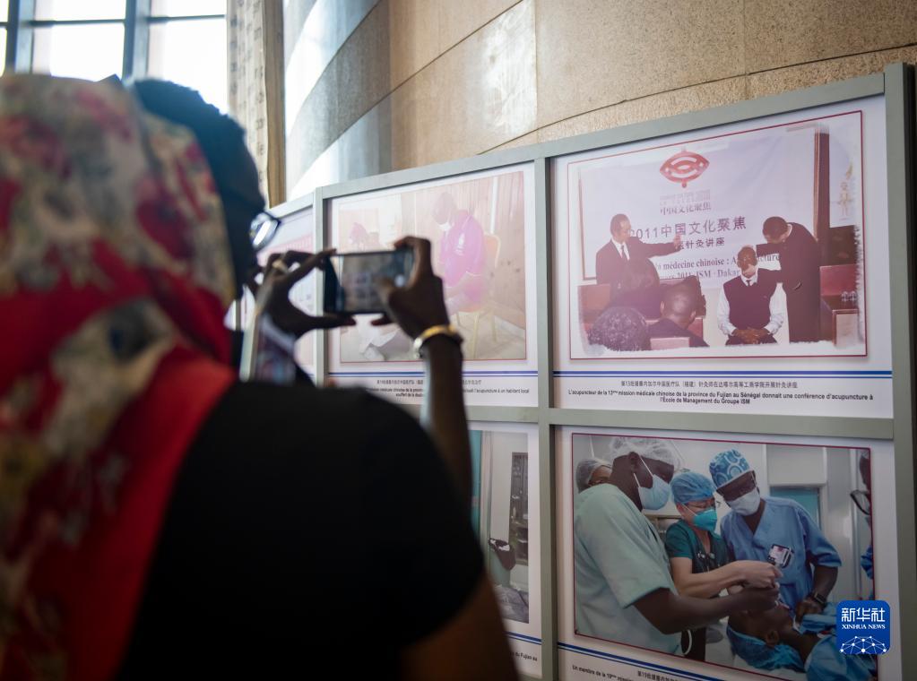 5月14日,在塞內加爾首都達喀爾,觀(guān)眾參觀(guān)中國醫療隊派遣60周年圖片展。