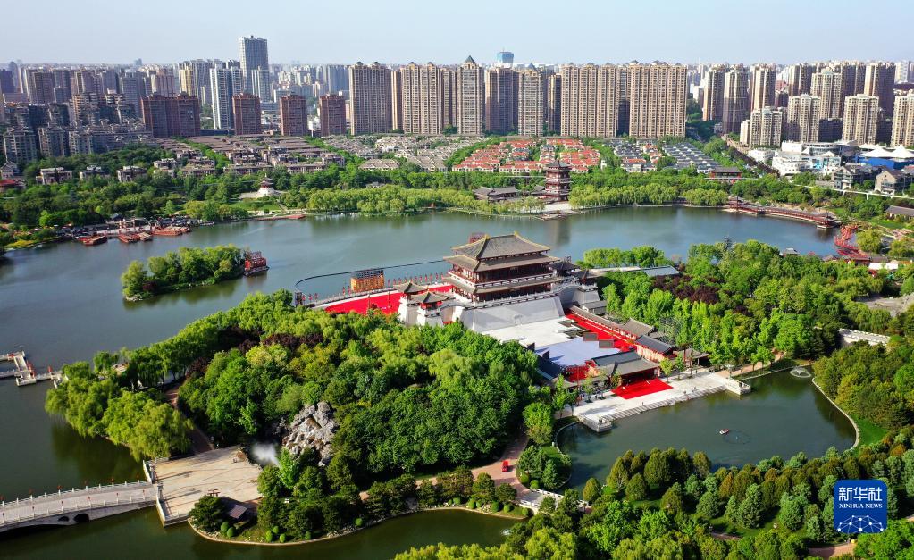 西安大唐芙蓉園(4月25日攝,無(wú)人機照片)。