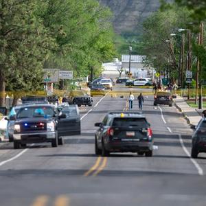 這是5月15日在美國新墨西哥州法明頓市拍攝的槍擊事件現場(chǎng)。