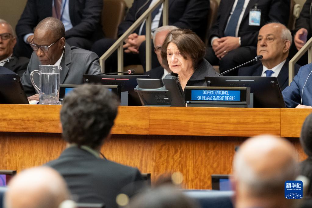 5月15日,負責政治事務(wù)的聯(lián)合國副秘書(shū)長(cháng)羅斯瑪麗·迪卡洛(中)在聯(lián)合國巴勒斯坦人民行使不可剝奪權利委員會(huì )高級別會(huì )議上致辭。