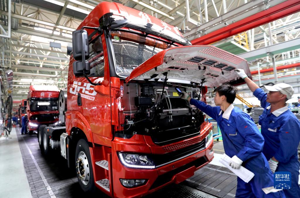 5月15日,山東省青島市即墨區一汽解放青島生產(chǎn)基地總裝車(chē)間的工人在檢測即將下線(xiàn)的汽車(chē)。