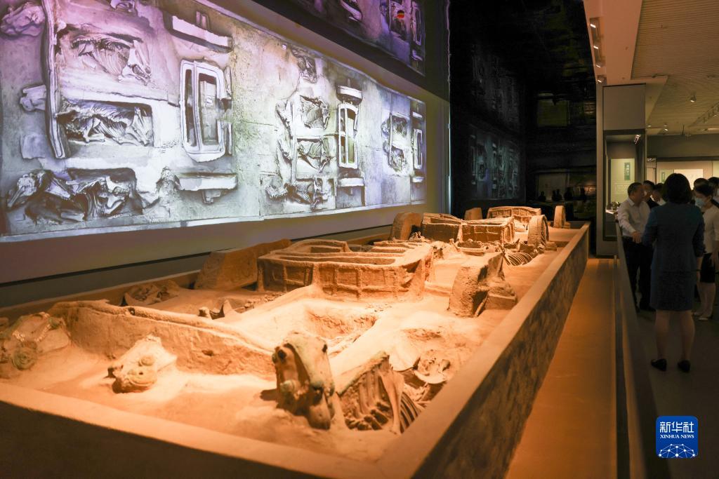 5月16日,觀(guān)眾在參觀(guān)展出的西周時(shí)期車(chē)馬坑。
