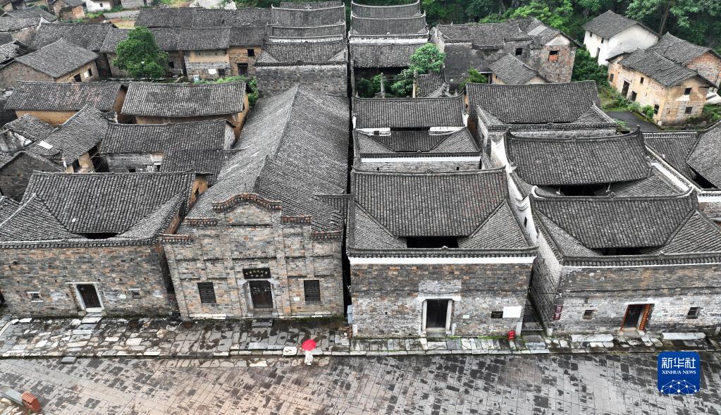 5月16日,游客在湖南省常寧市中田村古建筑群參觀(guān)游覽(無(wú)人機照片)。