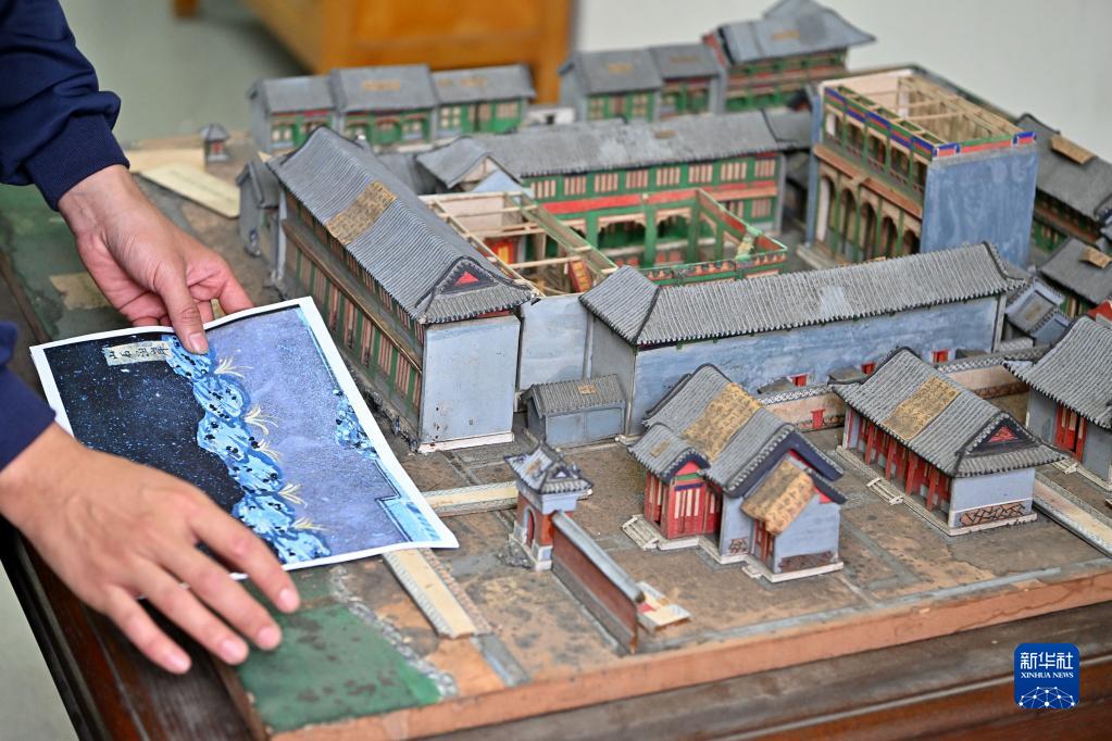 5月16日,國博文保院修復師向媒體記者介紹圓明園同樂(lè )園建筑群樣式雷燙樣文物材質(zhì)、構造等內容。