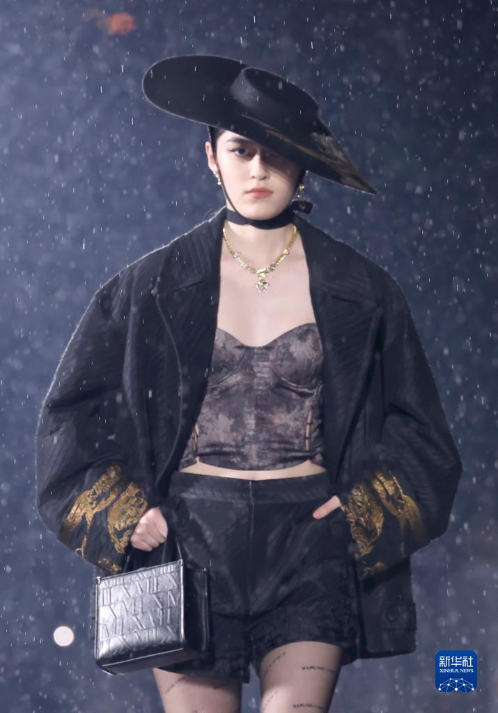 5月16日,模特在雨中展示XG 2023冬季系列時(shí)裝。
