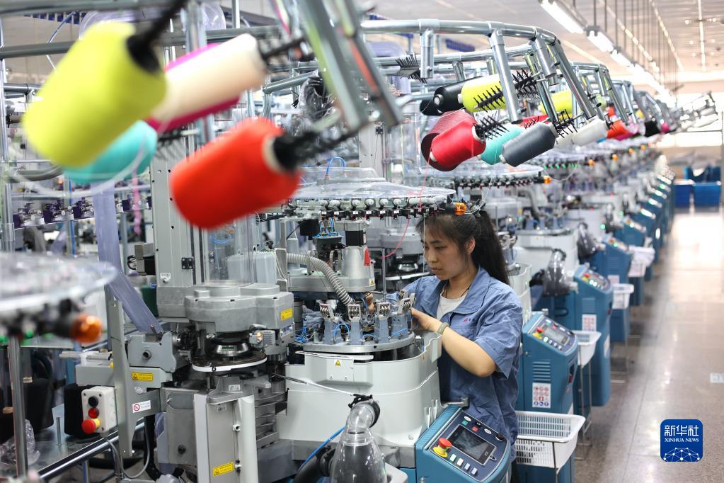 5月15日,在青島市即墨區即發(fā)集團有限公司生產(chǎn)車(chē)間,工人在加工棉襪。