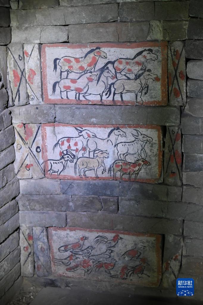 在嘉峪關(guān)魏晉墓六號墓的畫(huà)像磚上,繪有魏晉時(shí)期河西地區牛羊成群的景象(5月10日攝)。