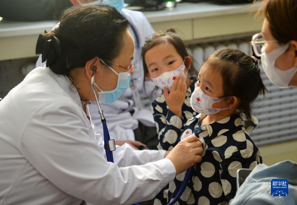 5月15日,在和田市維吾爾醫醫院,鄭州市第七人民醫院的醫療專(zhuān)家為一對雙胞胎小朋友做檢查。