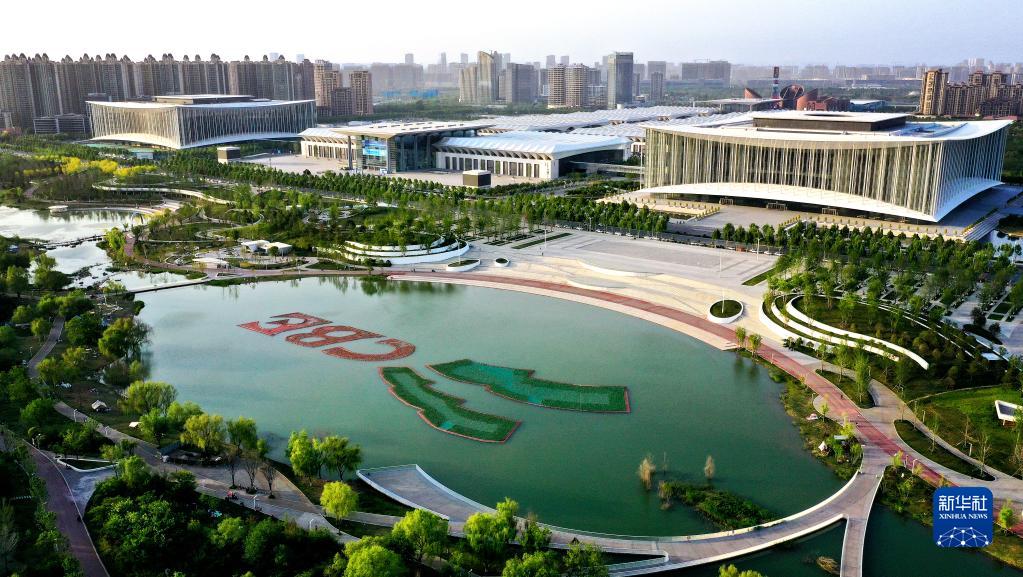 位于西安浐灞生態(tài)區的西安國際會(huì )展中心(4月16日攝,無(wú)人機照片)。